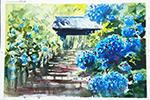 1988年、鎌倉生まれの若手水彩画家。鎌倉水彩画塾の塾長さんです。生まれ育った鎌倉の風土と歴史的環境の中で広く創作活動をされています。光と影を強調しコントラストを際立たせる「水彩印象画法」と呼ばれるドラマチックな表現で、鎌倉の四季折々を三嶋屋包丁のために描いていただきました。